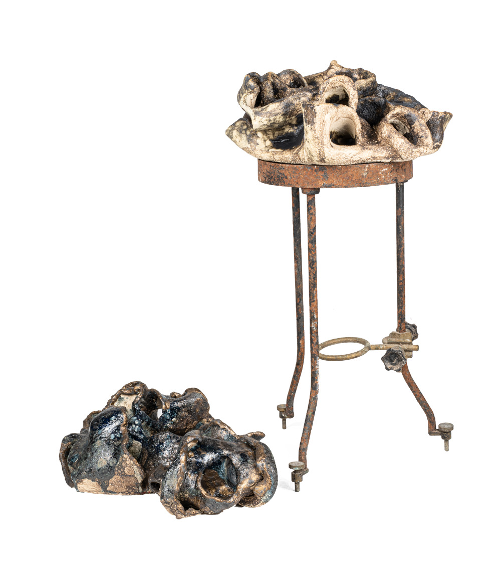 A Custom Designer Ceramic Ornaments with a rustic stand.