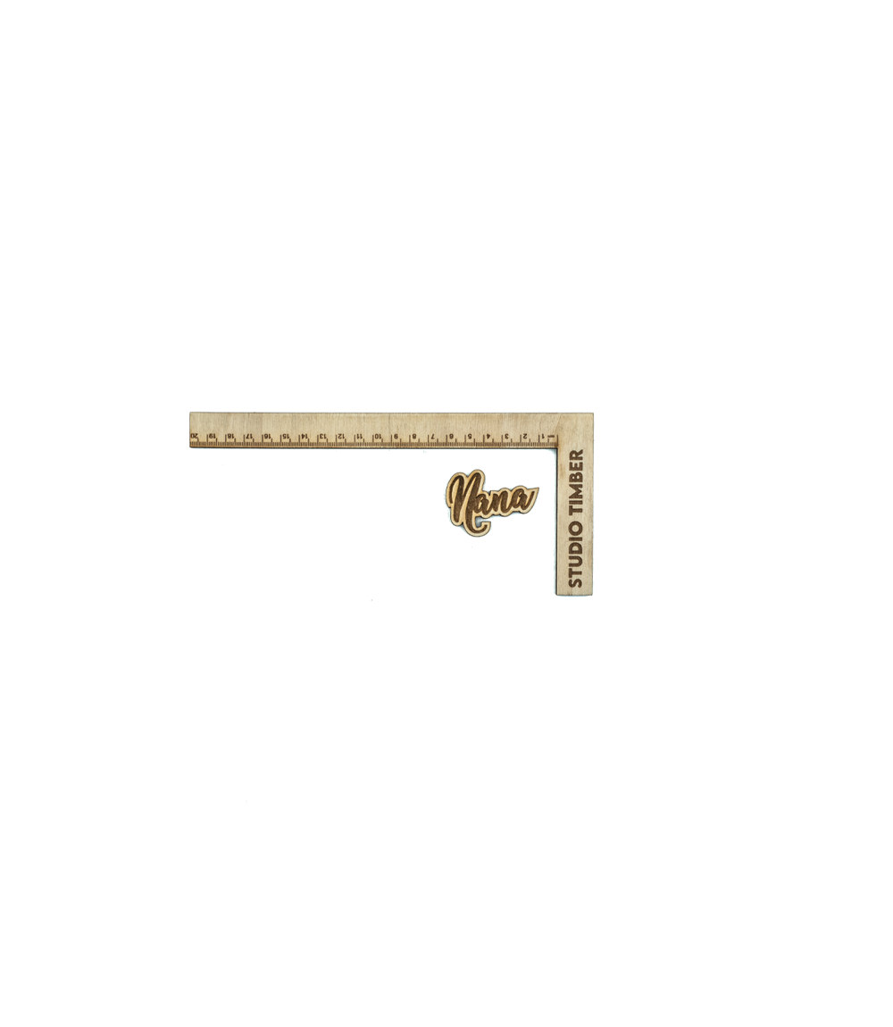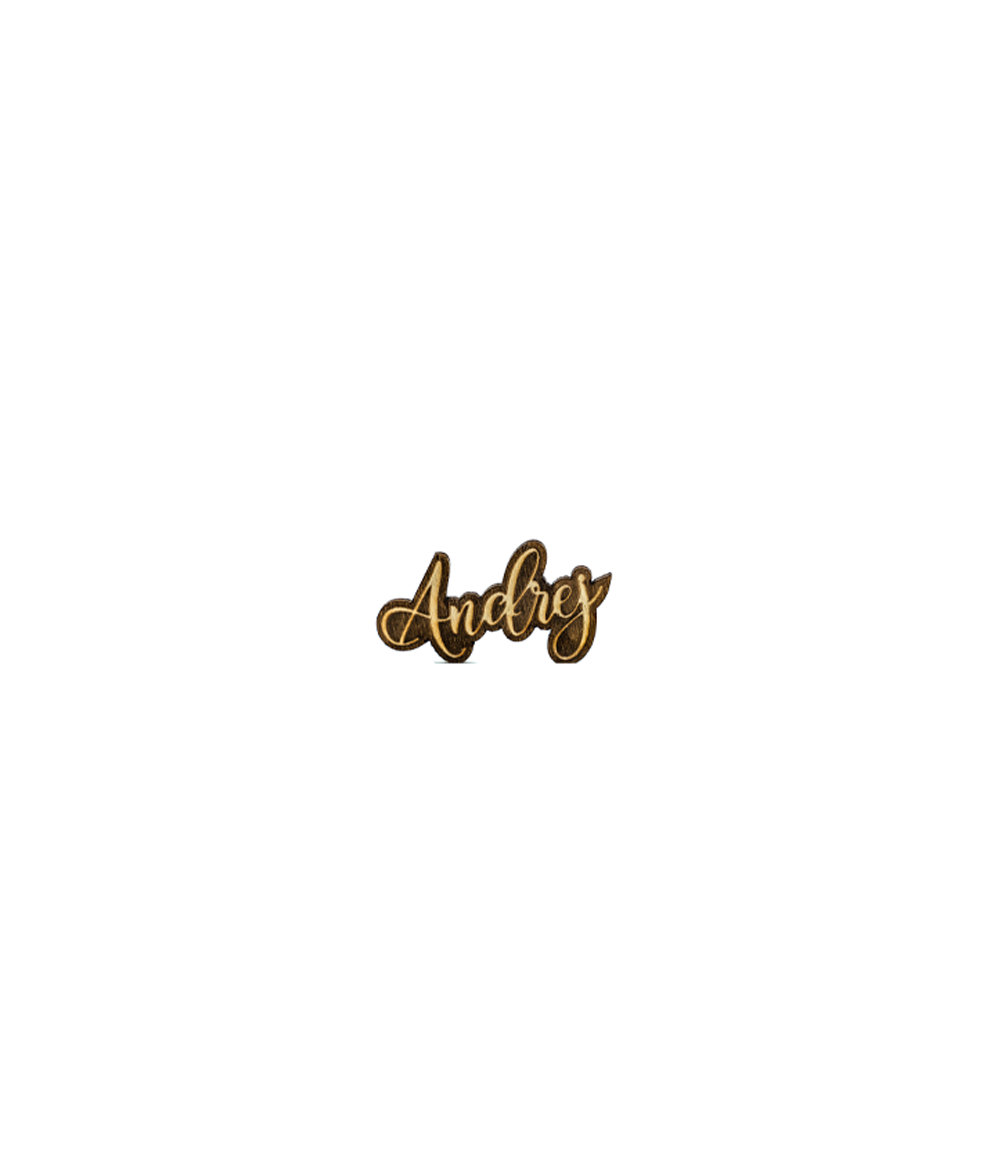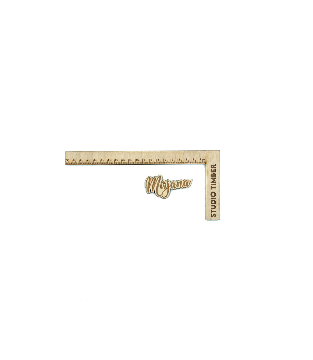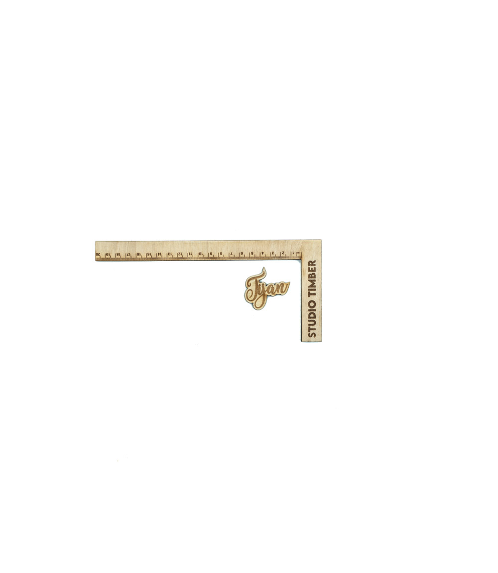 A custom wooden name tag, can be of any size and material.